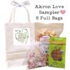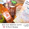 3. Akron Love Plus: Norka Sparkling Bottle of Soda: 12 oz, Arnold’s Carmel Corn: 6oz, Peaceful Fruit Strip Snack, 5 Waggoner’s Buckeyes, 2 Akron Post Cards