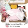 6. Ohio Love Spa Kit: A handmade 1 oz: Ohio-shaped triple butter soap, 2.5 oz Udderly Smooth Hand Cream (made in Salem OH), 3 Waggoner’s Buckeyes (Canton, OH), Hope Soap Lip Gloss: flavors may vary (Akron, OH), an Ohio Beeswax floating heart candle 1.3 oz (Kline’s Honeybee Farm, Rootstown, OH) a pair of ultra-soft cozy socks (only product not made in Ohio)