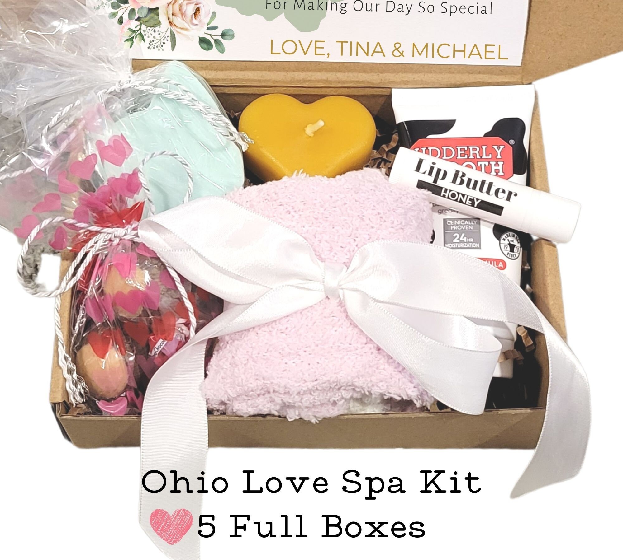 5. All our love from Ohio: 1 Heart-Shaped Ohio Beeswax floating candle, 1 Mini 2-oz Ohio Honey Bear, 1oz Ohio-Shaped Hand Soap (Color of your choice) or 1 tube of Ohio-Made Udderly