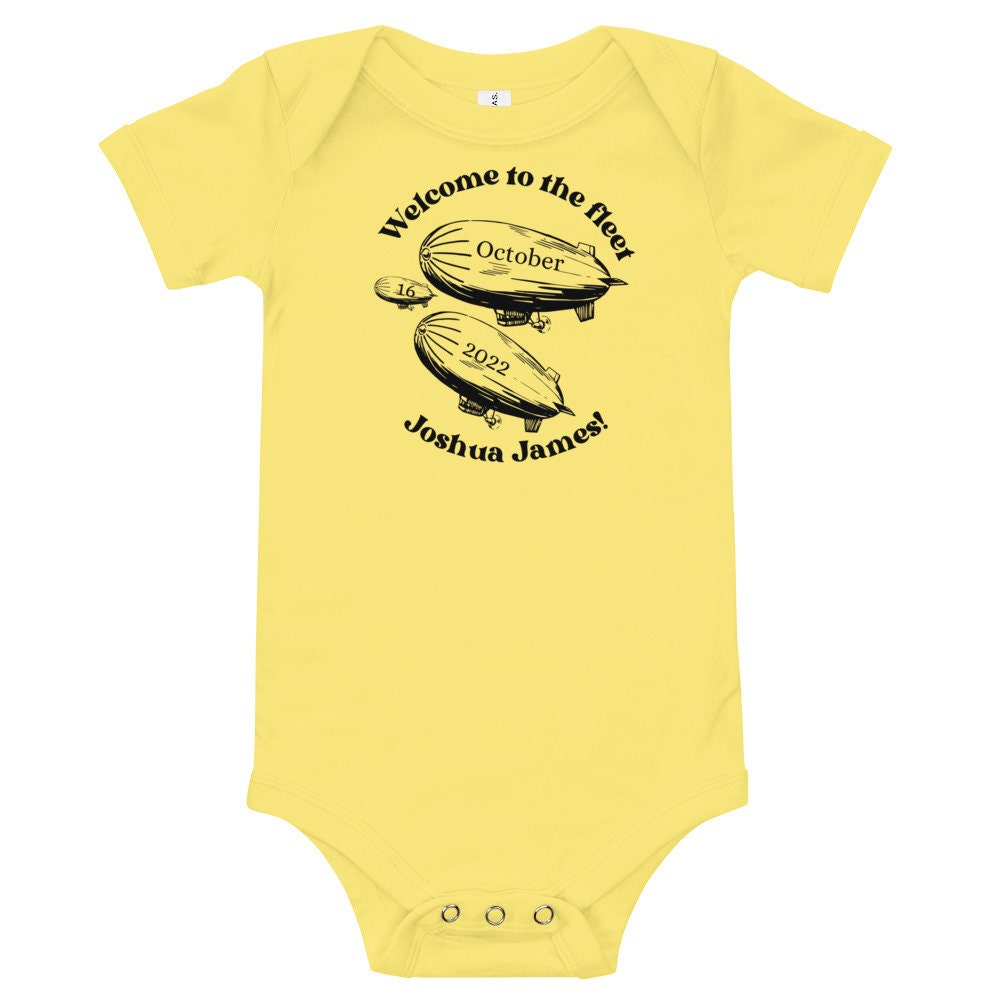 Celebrate a new precious baby with this fun, unique and personalized Akron Ohio Blimp shirt. It depicts a family of blimps with a cute little baby blimp. This baby bodysuit would be perfect for a boy or a girl. I can place the child’s name on the blimp or also include their birthday or any other message you would like to convey. This custom-made Akron baby gift is sure to bring a smile to your friends or loved ones, perfect for a baby shower gift too! If you are interested in a regular baby t-shirt with this design, you can find the listing in my shop. Have a wonderful day and keep looking up!
