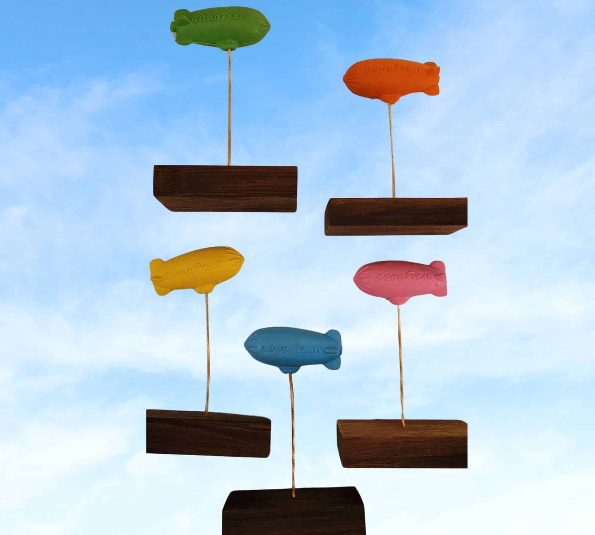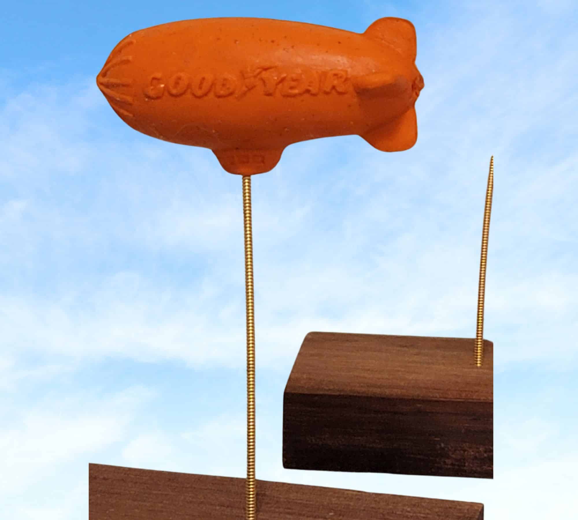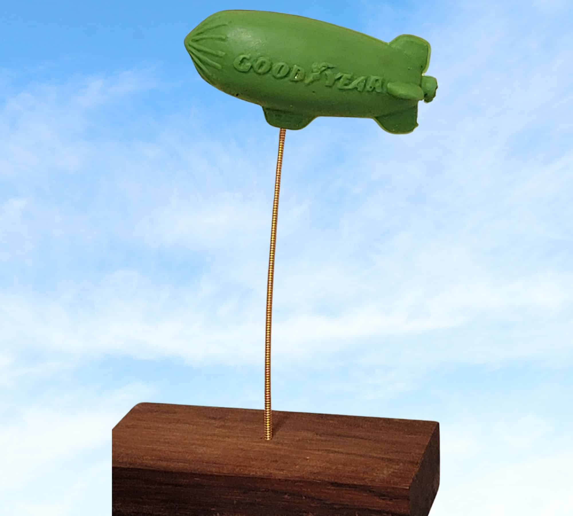 These genuine vintage blimp erasers are ready to take off as a new desk buddy for you or a friend or loved one! Hand-made in Akron by an Akron native master carpenter (My Dad : ) These blimps are fitted with a fun spring so they can be in motion and are mounted on a smooth Rosewood base which measures approximately 1.5 in. x 2.5 in. These would make a perfect gift for someone who loves Akron or someone new to Akron as a welcome to Akron gift. These Goodyear Blimps are “Lighter Than Air” and going fast! Free Shipping in the Domestic US! Available in the color of your choice. (Due to the vintage nature of these blimp erasers, there may be some age-related slight irregularities.)
