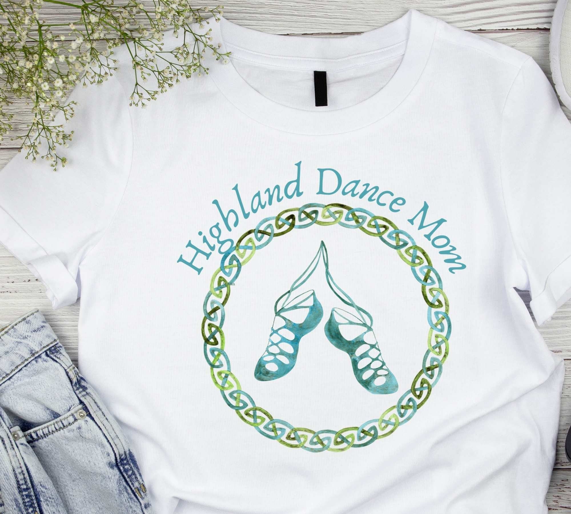 This Scottish Dance mom shirt is a perfect way to celebrate Highland Dance! It also makes a great gift for the mother of a Highland Dancer in your life. It is personalizable with the dancer’s name and dance troupe as well if you fill out the personalization box. Message me if you are interested in another style/color shirt such as a hoodie, bag, or long-sleeved-you can let me know in the “order notes” section of the checkout page if you would like the dancer’s name included on the shirt.