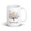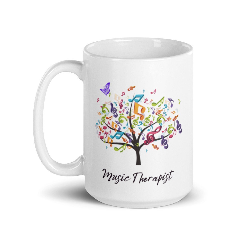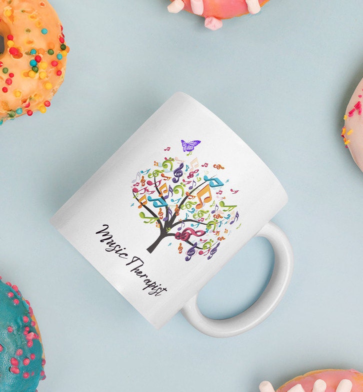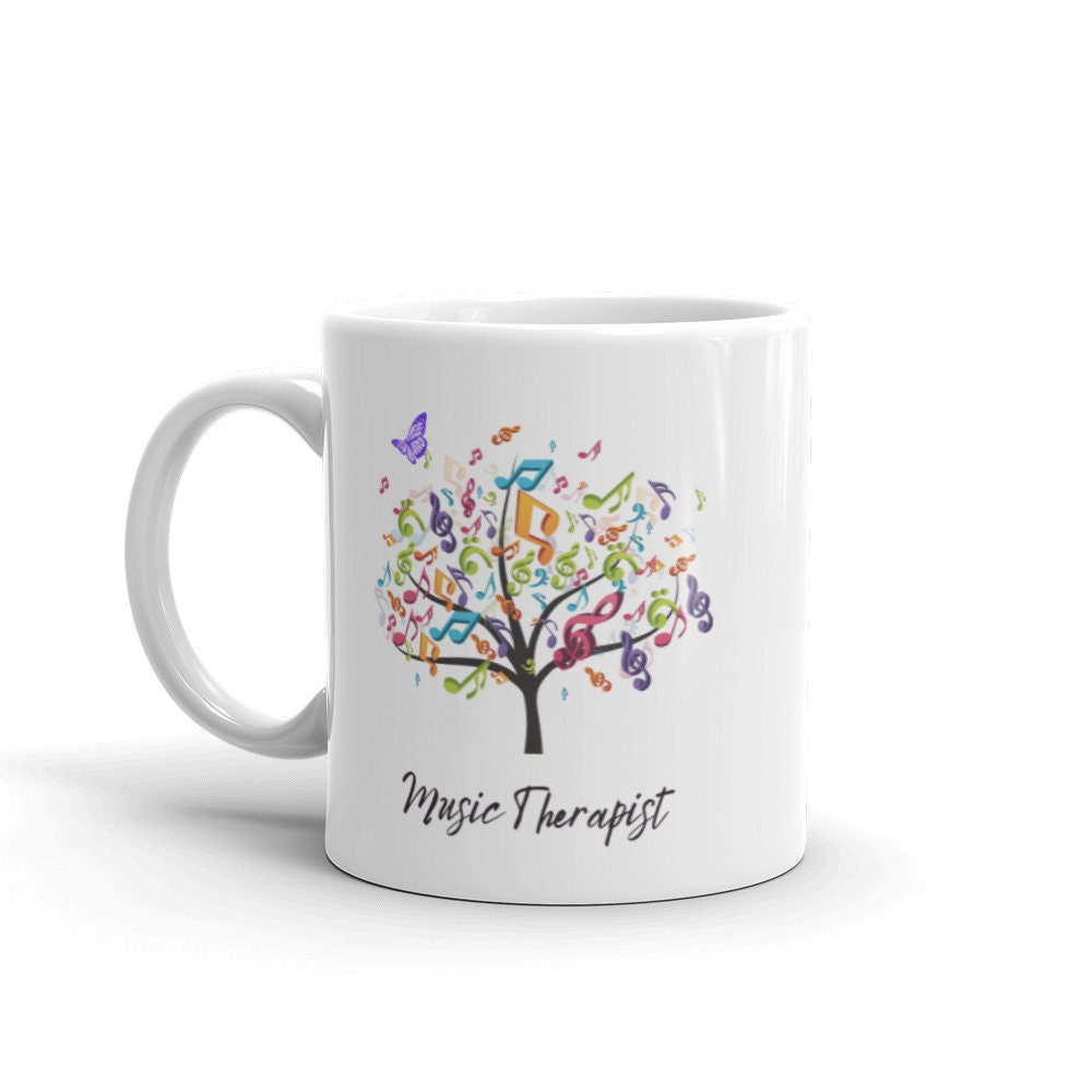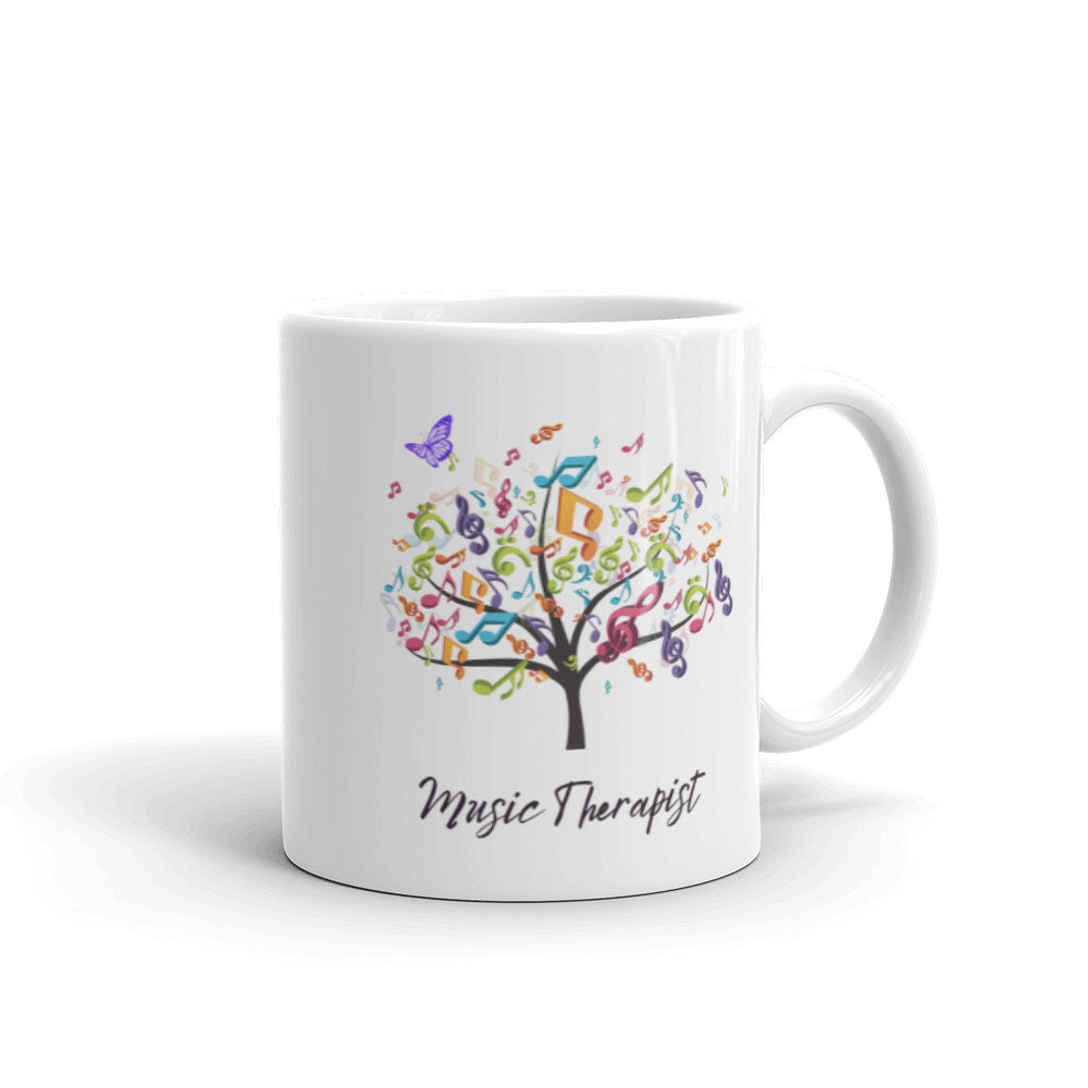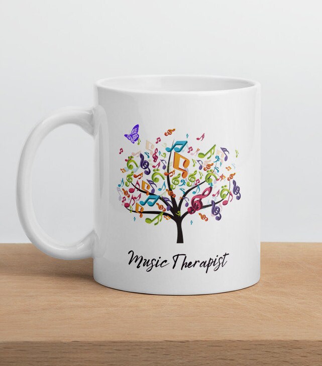 Share your love for music therapy with this mug with a beautiful musical tree design! Perfect for you or a friend!