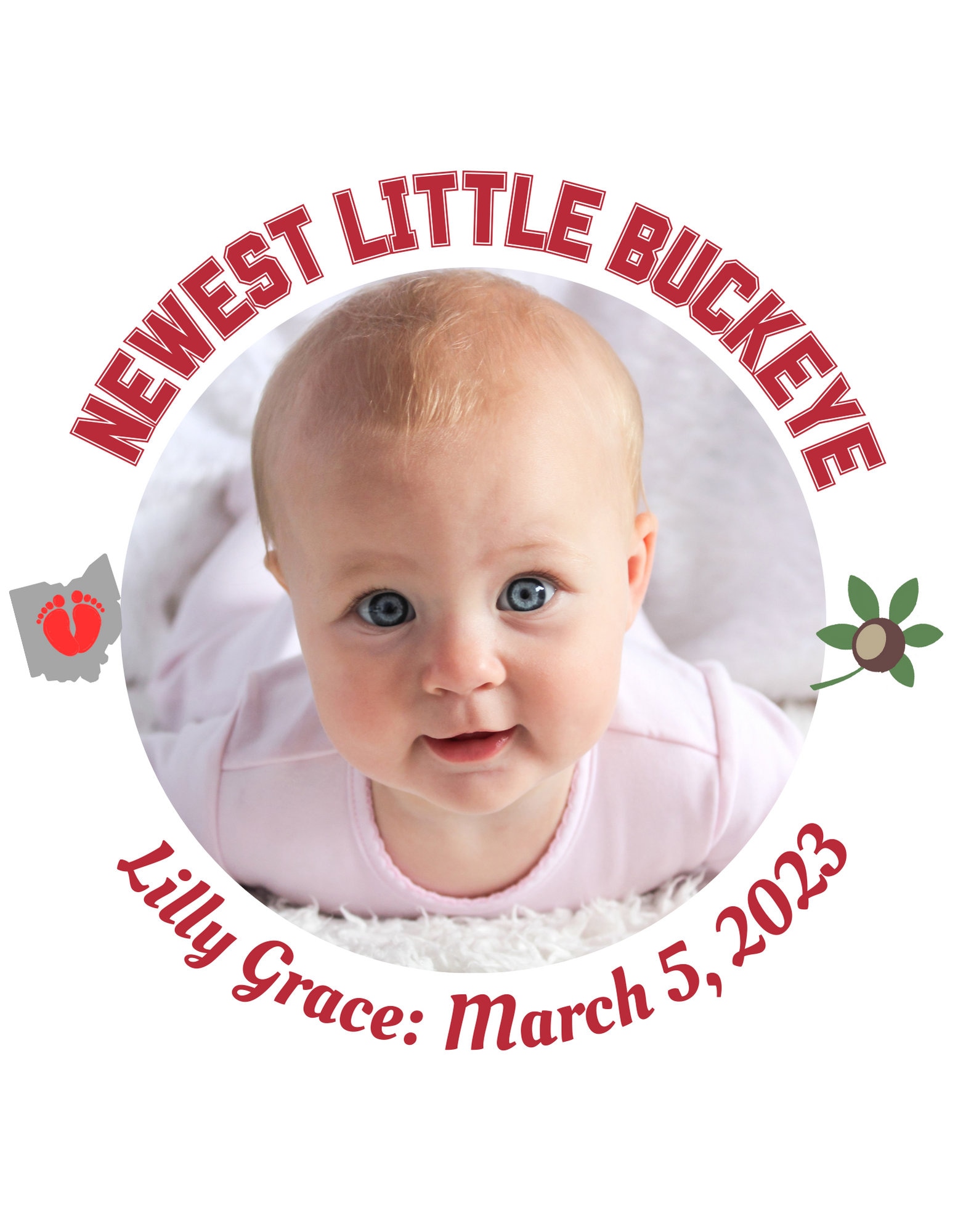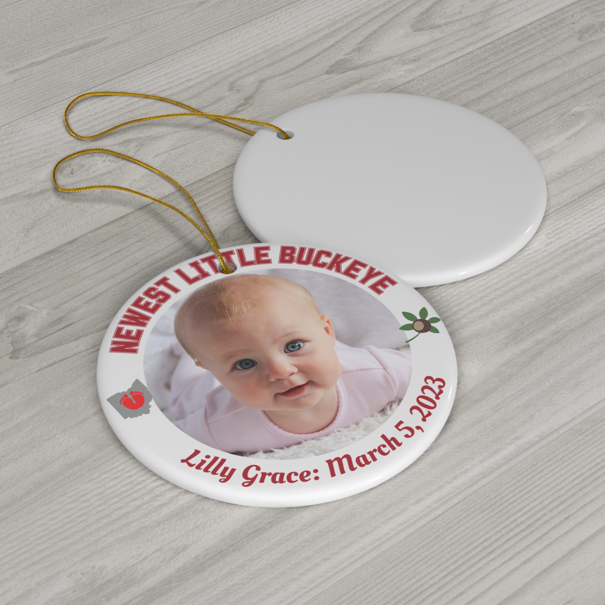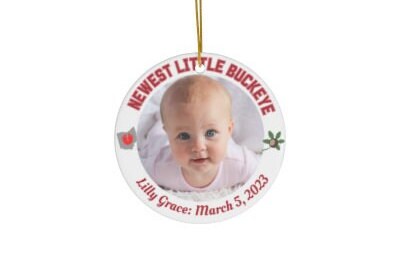 Commemorate a special Ohio State University fan or alumni’s new baby in your life with this special custom photo ornament. A perfect gift for an OSU grad, or to give to a mom, dad, grandparent or family member to celebrate a new buckeye baby! The wording and dates are fully customizable, and I would be happy to include another year if you would like to choose a year from the past. This ornament is a great way to display your buckeye pride and can be displayed all year round! Simply submit your photo to withlovefromohio@gmail.com and the wording you would like and be sure to check your email for a draft from me. Once you approve the draft, I will send it for printing. If I don’t hear back within 48 hours, I will use my best judgment and finalize the design. Be sure to check my shop for other OSU personalized photo ornaments for weddings, anniversary, new baby and graduations.