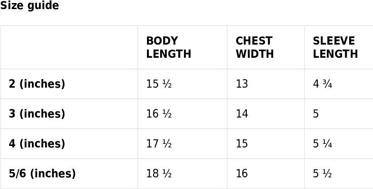 SIZE BODY LENGTH CHEST SLEEVE LENGTH